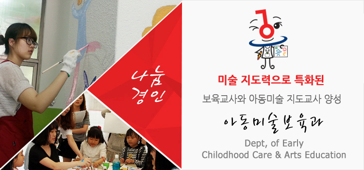 ¾Æµ¿¹Ì¼úº¸À°°ú´Â Àμº°ú ¿ª·®À» °âºñÇϰí Àü¹®ÀûÀÎ ¿µÀ¯¾Æ º¸À° ¼ºñ½º¸¦ Á¦°øÇϱâ À§ÇØ ¹Ì¼úÁöµµ·ÂÀ¸·Î Æ¯ÈµÈ º¸À°±³»ç¿Í ¾Æµ¿¹Ì¼ú±³»ç¾ç¼ºÀ» ¸ñÀûÀ¸·Î ÇÑ´Ù. À̸¦ À§ÇØ º» Çаú¿¡¼´Â ´Ù¾çÇÑ ¿µÀ¯¾ÆµéÀÇ ¿å±¸¸¦ ÃæÁ·½Ãų ¼ö ÀÖ´Â º¸À°Áö½Ä°ú ÀμºÇÔ¾ç, ¹Ì¼ú½Ç½À°ú ÀÛǰÀüÀ»